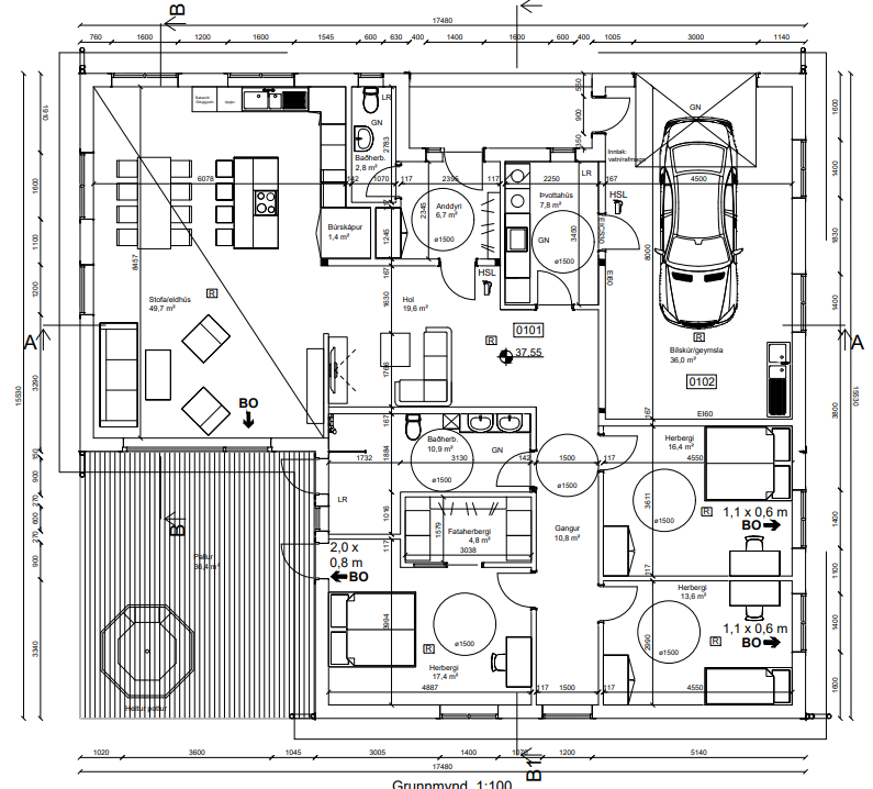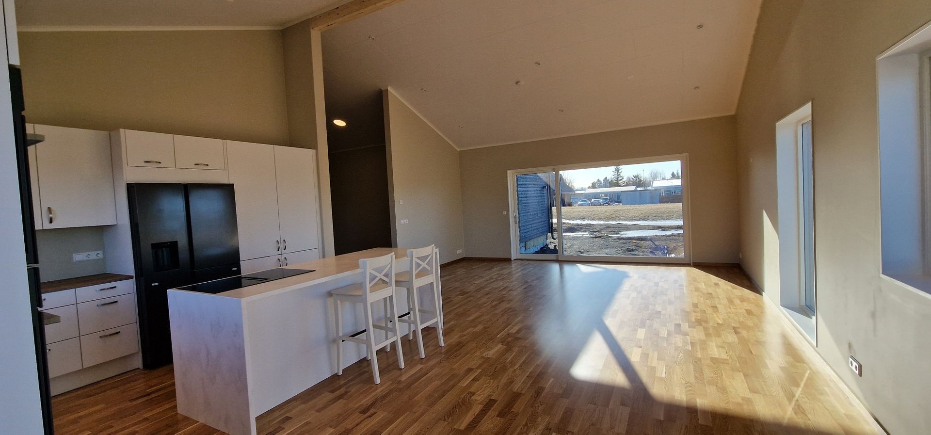 Auður er glæsilegt einbýlishús á einni hæð, stærð 227,1 fm. Húsið er einstaklega glæsilegt, hátt til lofts og stórir gólfsíðir gluggar. Húsið er með bílskúr og hægt er að fjölga herbergjum og/eða stækka rýmin.