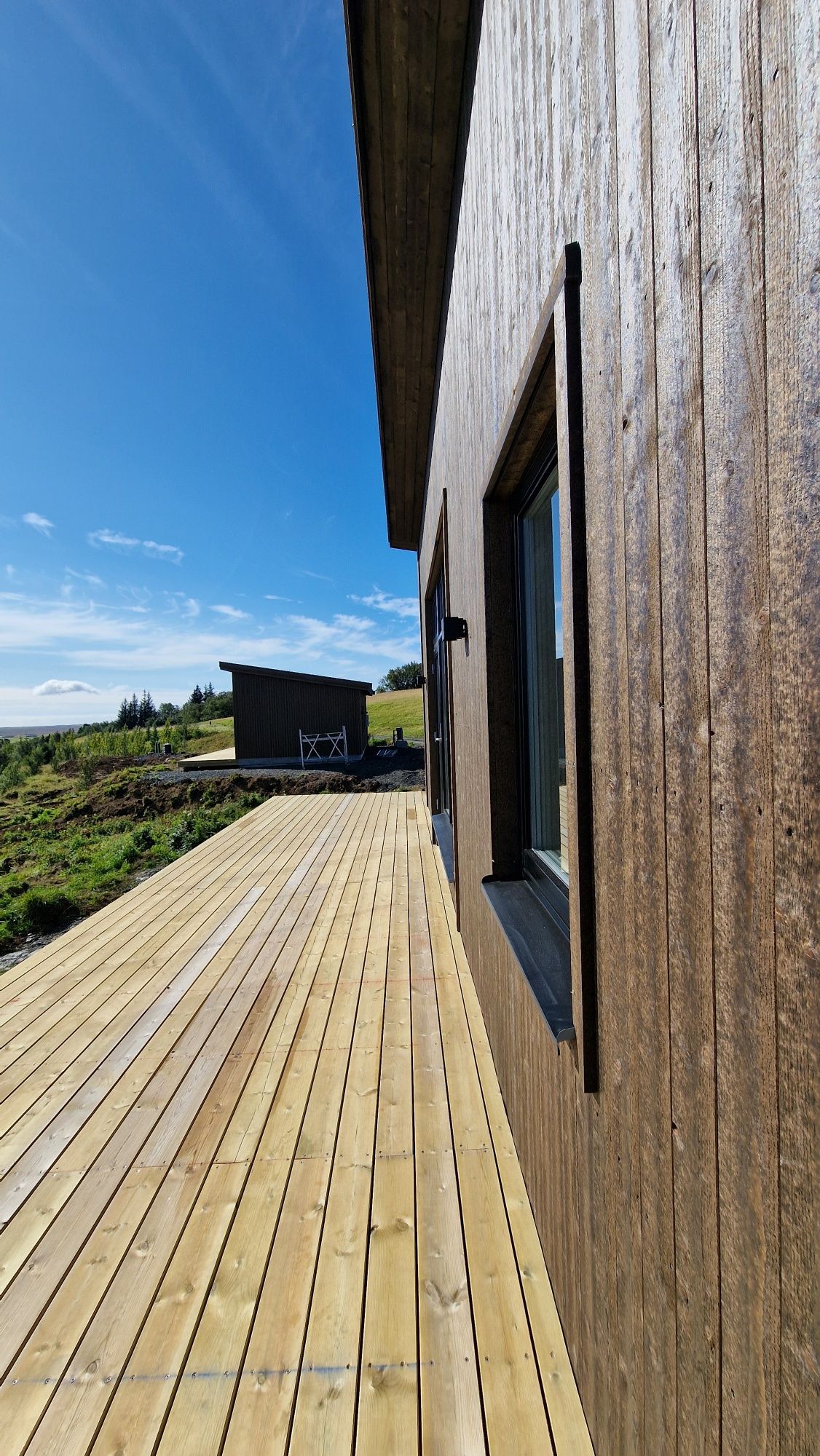 Soltorp frístundahús á einni hæð með verönd. Húsið er 50 fm en getur verið stærra/minna eftir óskum. Tvö svefnherbergi, salerni með þvottaaðstöðu og sturtu. Eldhús og stofa. Húsin eru með sama byggingarstaðla og íbúðarhúsin og eru glæsileg frístundahús. Þak getur verið einhalla eða venjulegt. Frístundahúsin hafa jafn mikil gæði og íbúðarhúsnæði þ.e. einangrun er sú sama og þar með þykkt útveggja og þaks. Gler er þrefalt og gluggar eru ál/timbur gluggar. Bárujárn á lektum á þaki. Húsin er auðveldlega hægt að stækka í allar áttir allt eftir þörfum hvers og eins.